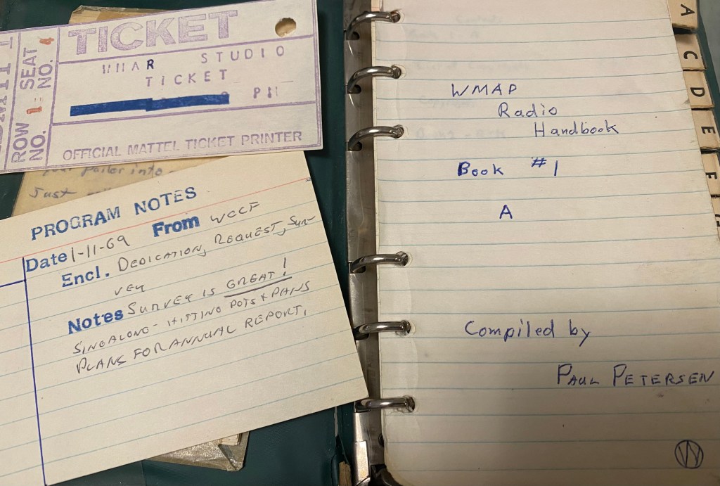 I ran my station with various features such as my serial, Jim Show of Africa with his colleague Penny Loafer. All was documented in a handbook …. even commercials (always coke)…and we had studio tickets as well — my siblings and their runny nosed friends and cousins would make noise outside my bedroom window — gee, not unlike all the tv shows with glass wall observing areas. Ha! We did a show a week — doors, beatles, creedence clearwater, steppenwolf, herb alpert (my theme song, thanks Mom).