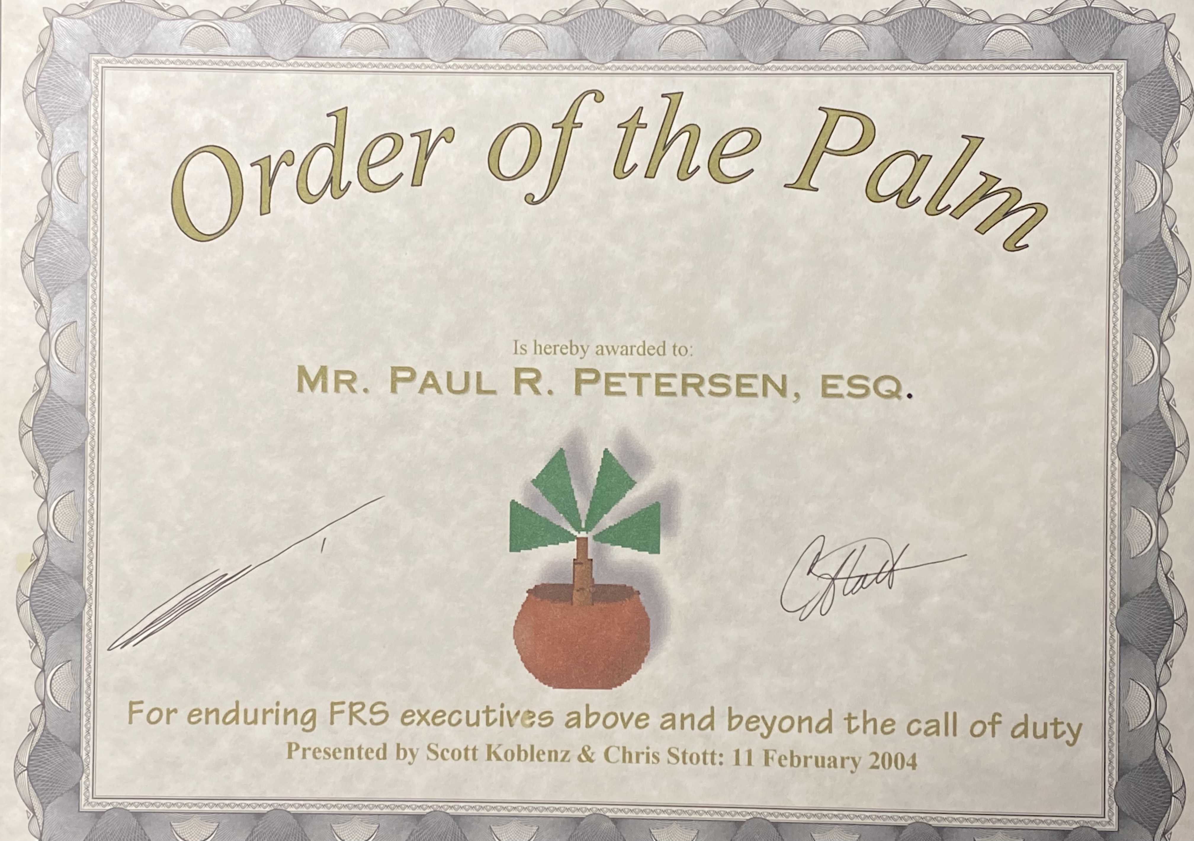 In my 20 tears, there has been a lot of change. There is an old Cagney/Fonda/Lemmon movie called Mr Roberts —- about a naval officer who weathers the storm above while keeping the troops focused. My team recognized a similar attribute— and another VP gave me feedback on my style ; “that I lead from the front.” I’m incredibly proud of this. I live and breathe what my team experiences. I’m with them. The Order of the Palm is recognition that keeping cool is a good thing. As a middle manager, I kept the team focused on our mission.. and helped maintain a calm situation.